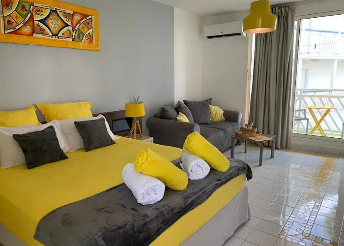 The hotel has a beachfront setting within 10 minutes' drive of Marche La Rotonde, while natural sights like Plage de Bois Jolan are about a 15-minute drive away. A popular place in Saint-Francois is Raisins Clairs Public Beach, which is approximately 3 km away. Such entertainment attractions as Hyper Casino St. Francis are also nearly 20 minutes away by car. There is Anse a la Barque bus stop just around the corner from Studios Freebroise hotel.